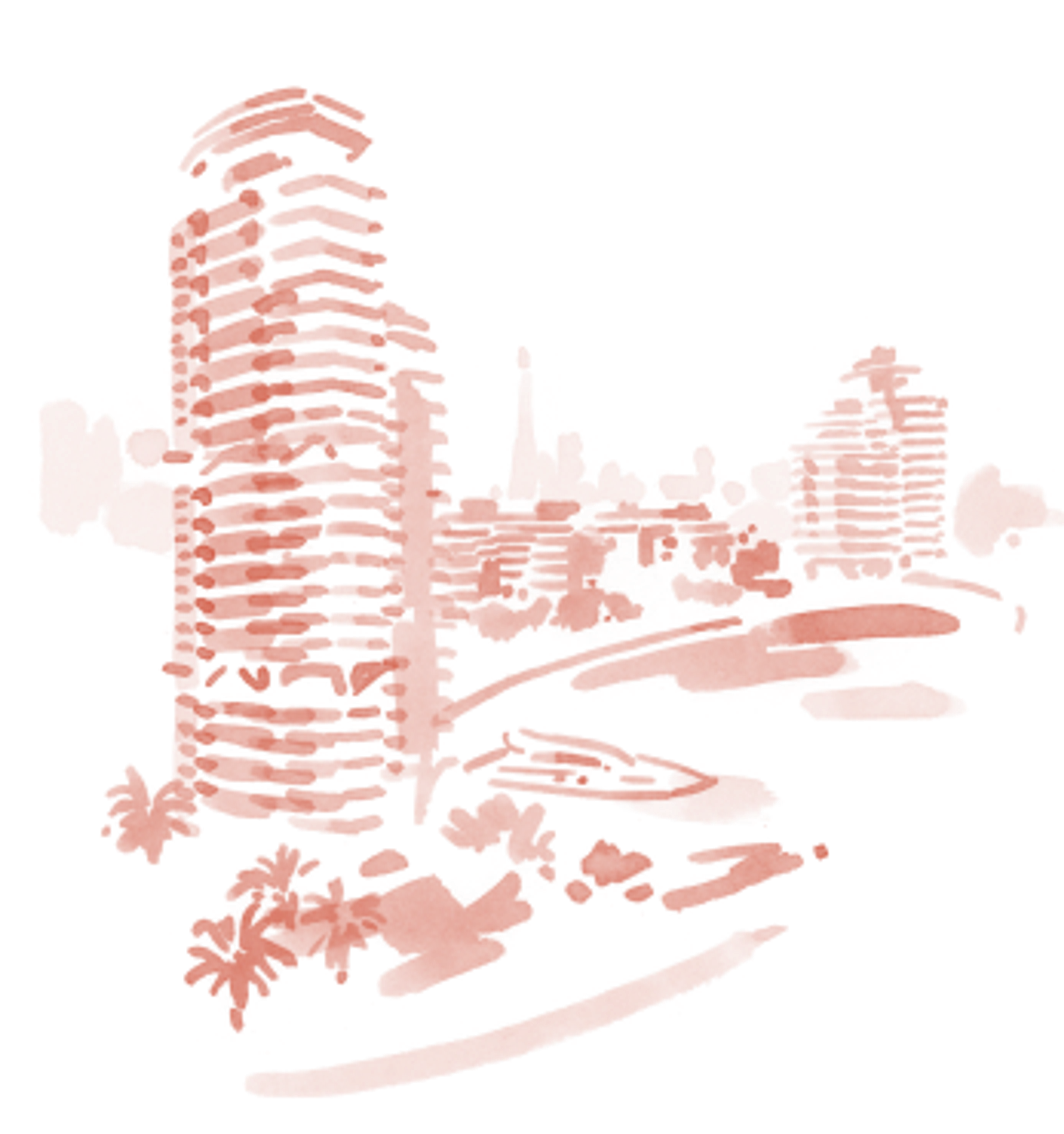 Immersed in beauty, surrounded by elegance, with natural materials, soft fabrics and coastal hues. A dramatic entrance lobby, robed in calacatta marble and timber panels, sets a sumptuous tone for each residence. The spacious, light-filled living room celebrates the dazzling waterfront views that move from morning sky blues to deep sunset reds.